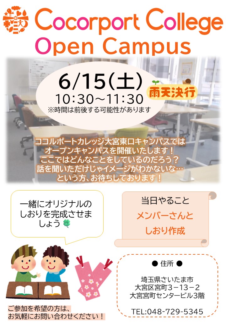 大宮東口キャンパスでは、6月15日(土)にオープンキャンパスを開催します!🎉