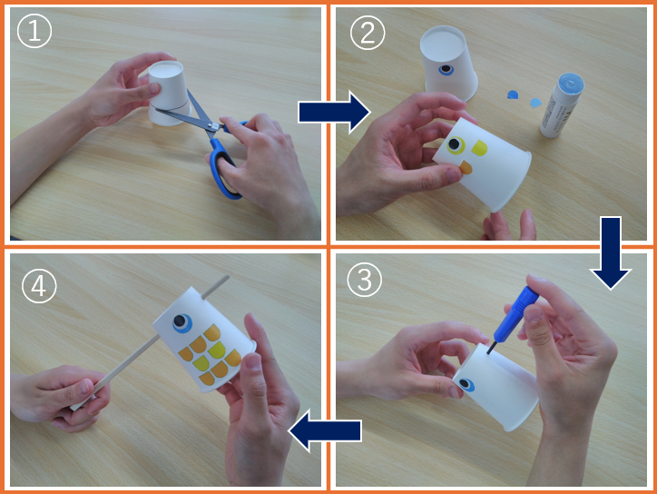 紙コップ、折り紙、画用紙、割箸があれば作れるので皆さんもぜひ作ってみてください!!
