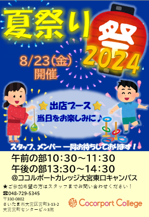 大宮東口キャンパスに興味を持っていただいた方や夏祭りを一緒に楽しみたい方、ぜひご来場ください!!