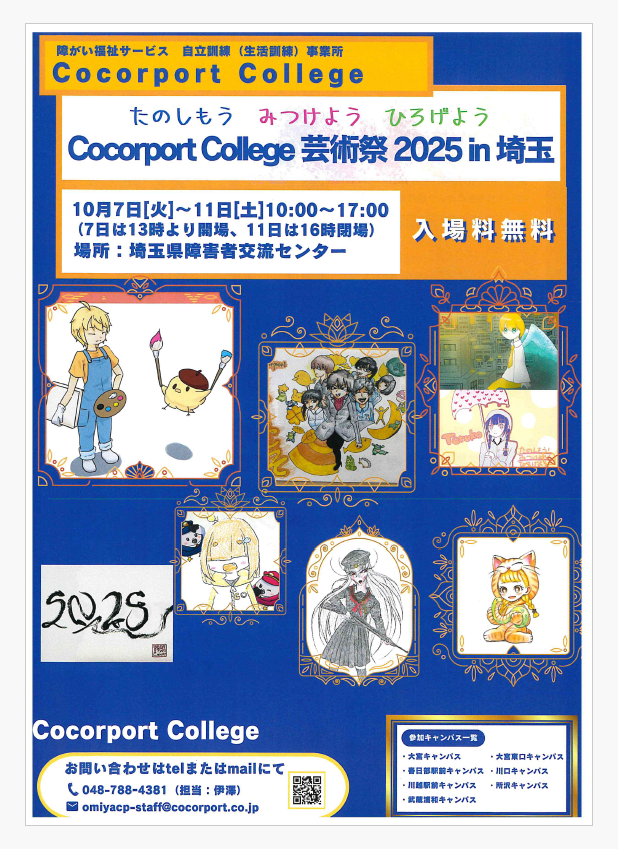 この芸術祭を通して大宮東口キャンパスにご興味を持っていただけましたら、お気軽にお問い合わせください😊