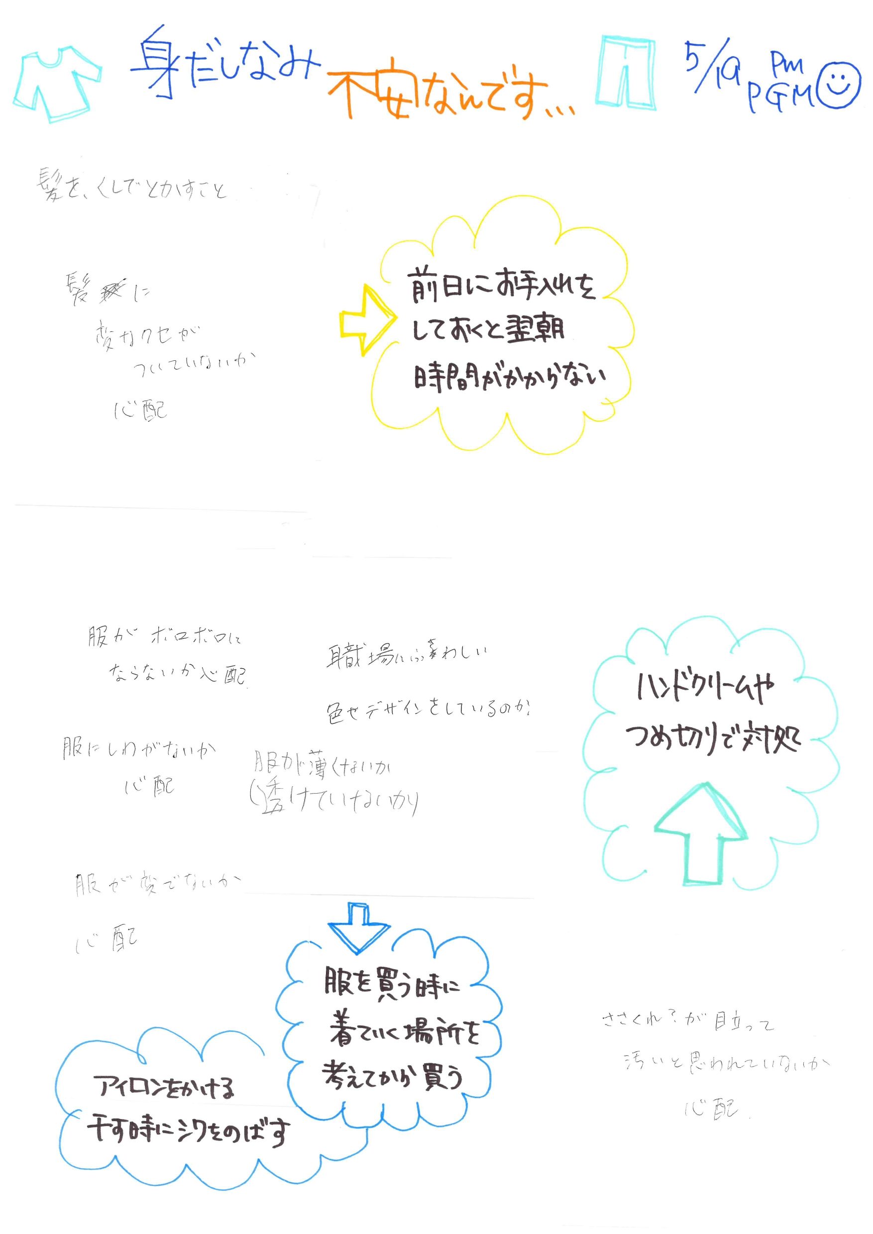 先日「身だしなみ」のプログラムを行ない、皆さんの不安に感じていることを共有しました。