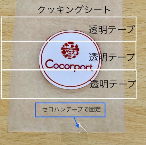 クッキングシート→透明テープ→素材→透明テープ