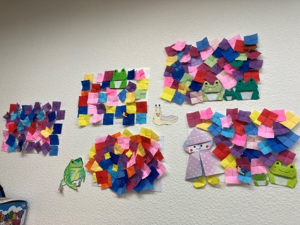 (6月の壁飾りプログラムで利用者さんが協力して作ってくれました☆彡)
