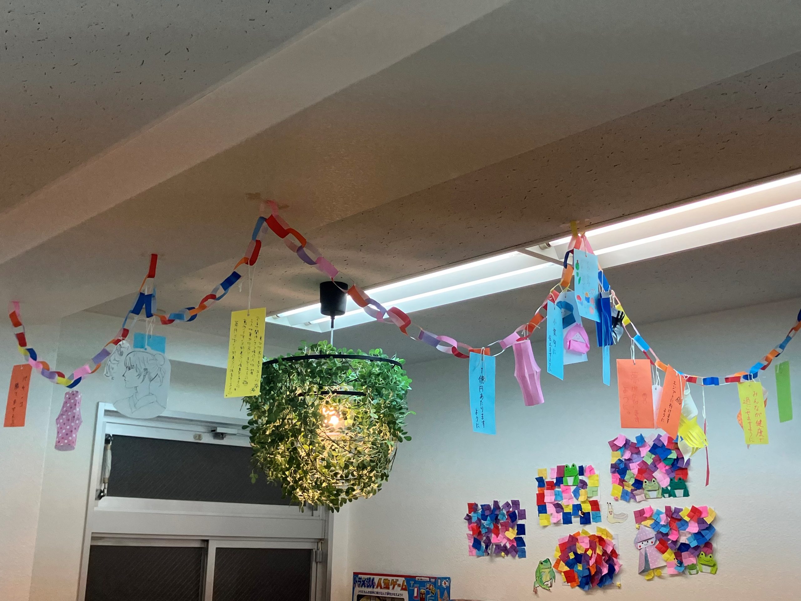 7月といえば七夕!ということでリラックススペースの上に短冊を飾りました🌟