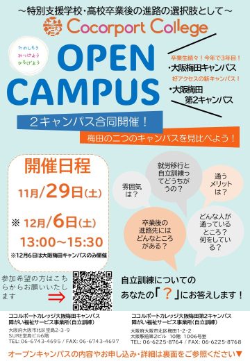 11月は11/29(土)にオープンキャンパスを開催いたします💡
