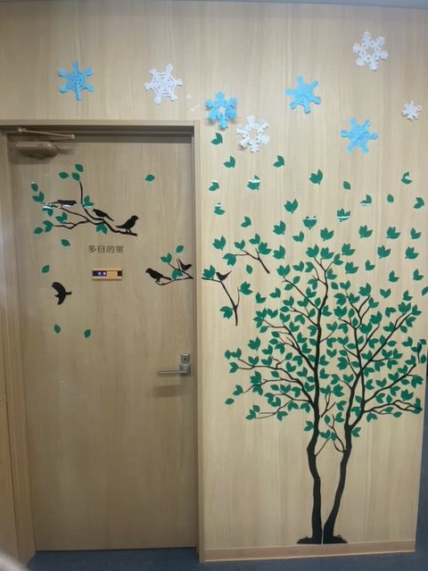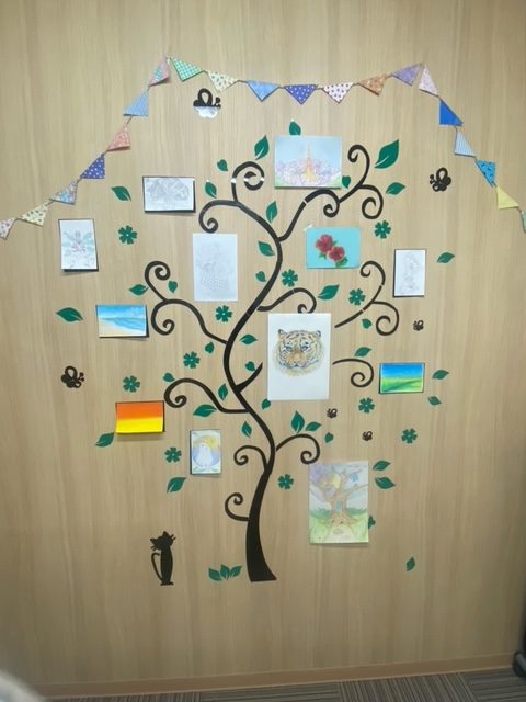 この装飾はご利用者様が作成しています。自分が作ったキャンパスと感じられ、「通所が楽しくなってくる!」といったお声もいただいております✨