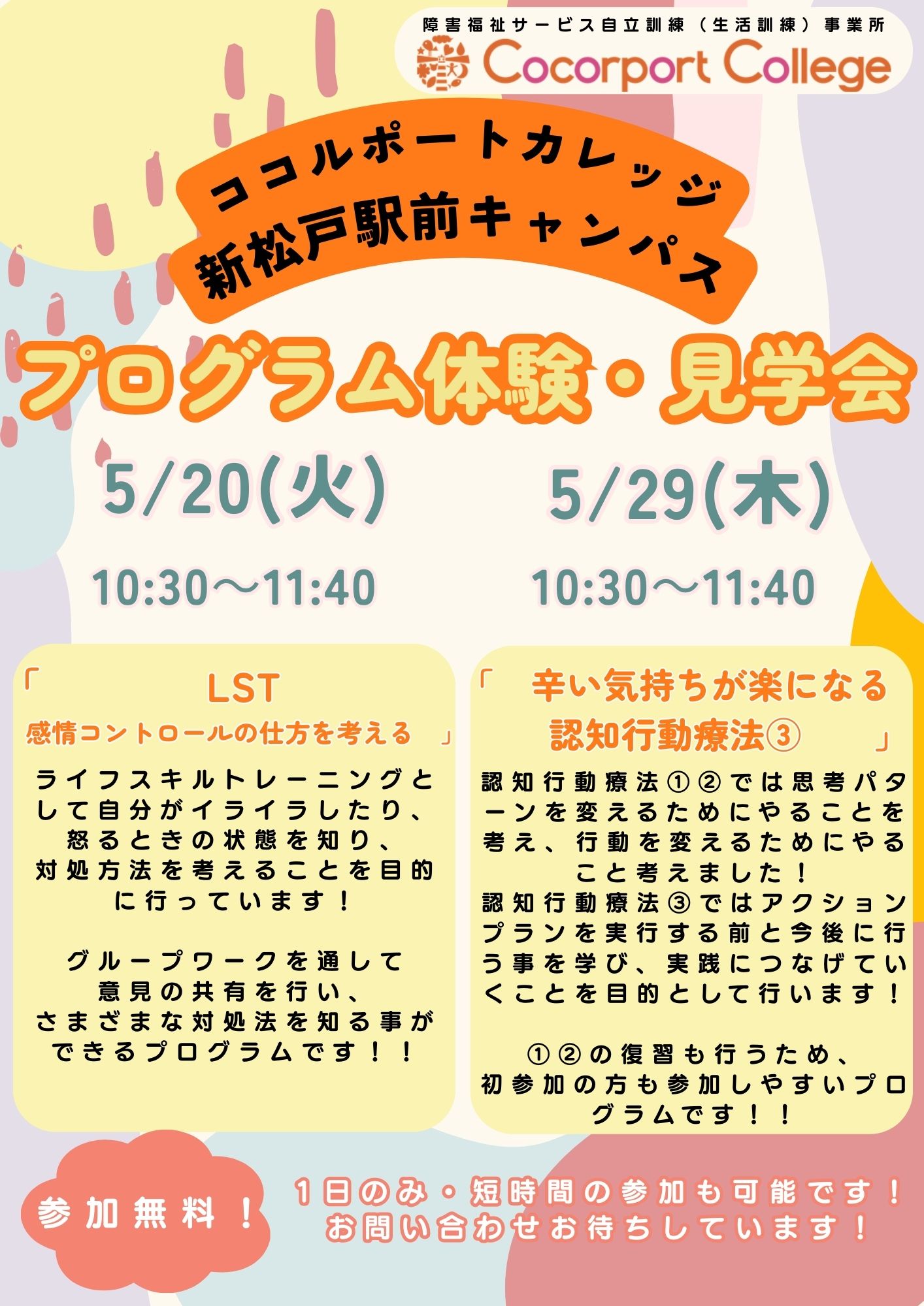 【新松戸駅前キャンパス】📣5月プログラム体験・見学会のお知らせ🎏