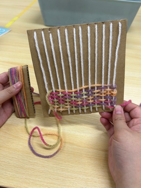 段ボールを活用して、これからの季節にぴったりな毛糸で作るコースター作成を行いました!
