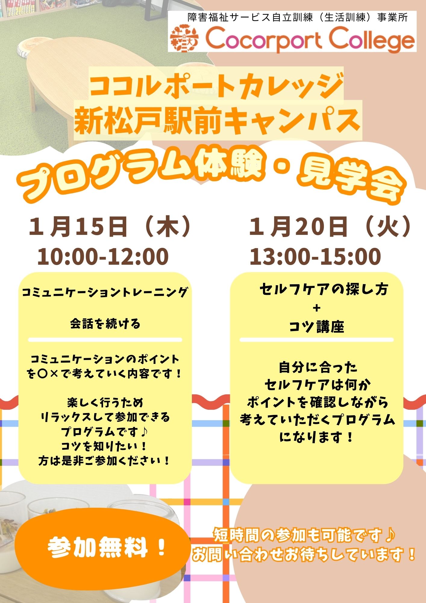 カレッジ見学お申込み | 自立訓練のココルポートカレッジ (cococolle.jp)