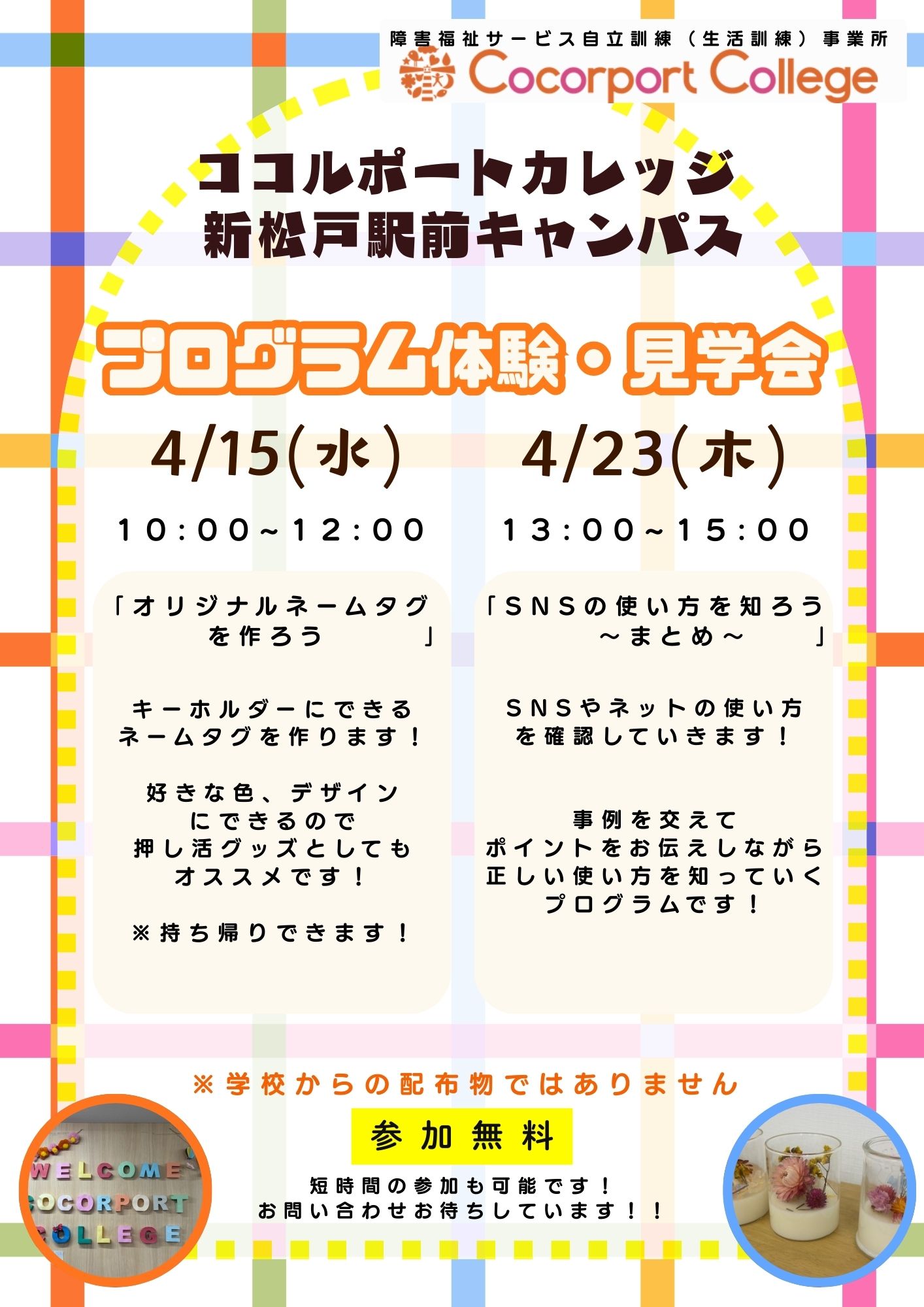 【新松戸駅前キャンパス】🌸4月のプログラム体験と見学会のお知らせ🌸