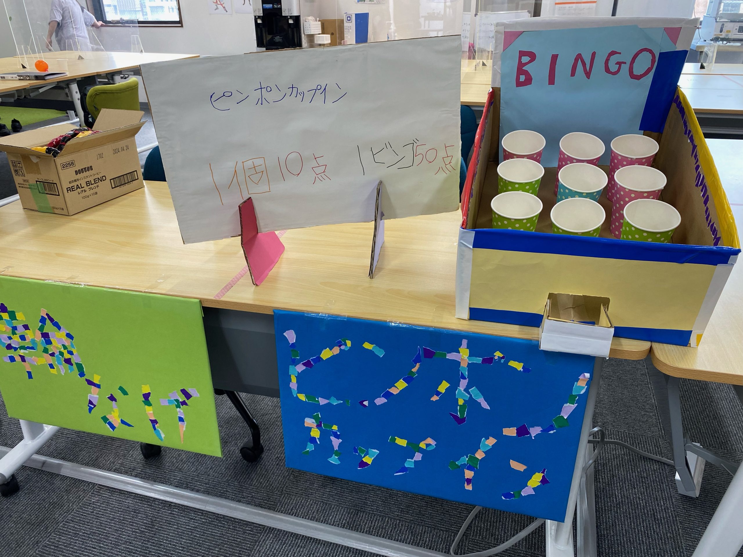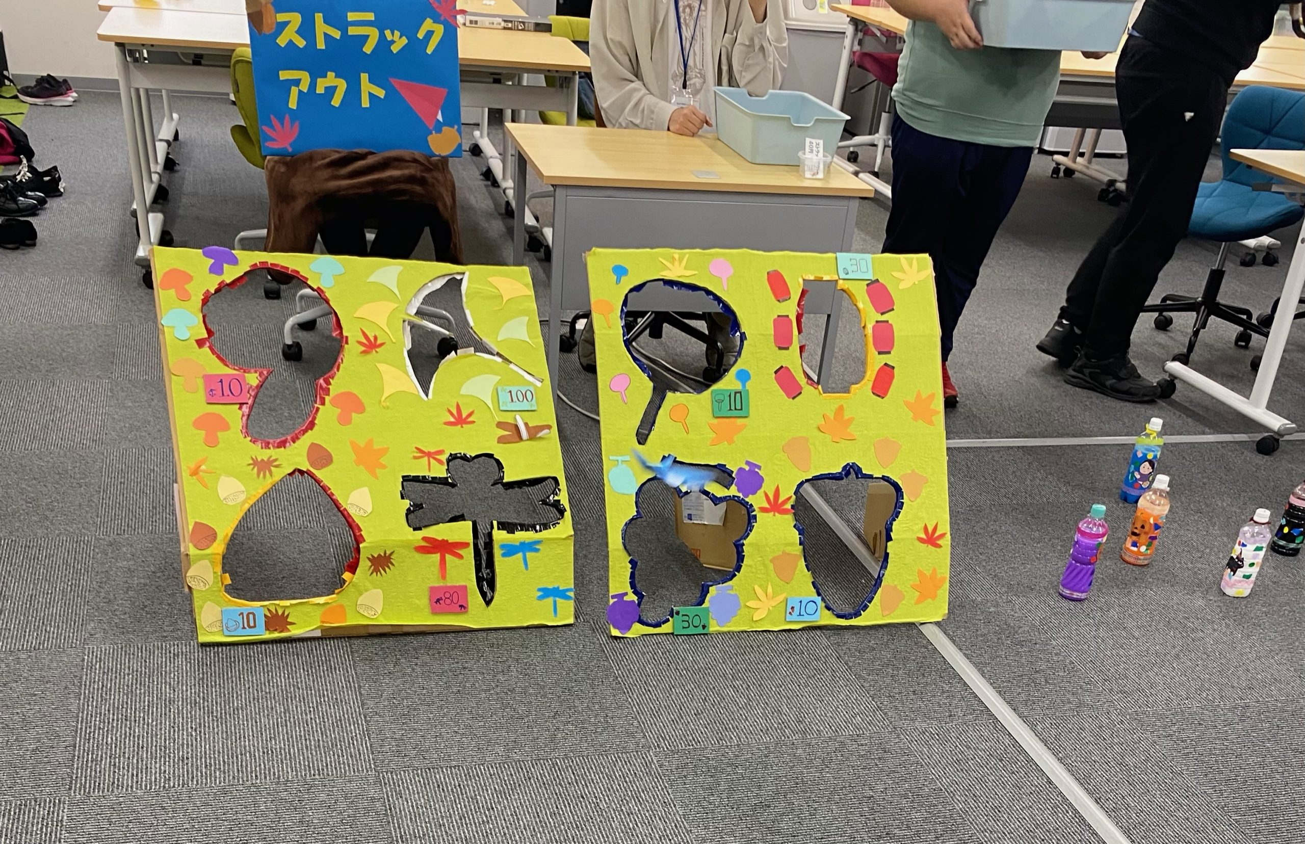 ピンポンカップイン、輪投げ、ストラックアウト、巨大だるま落とし、ヨーヨー釣りを行いました🎶