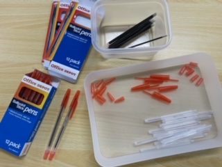 ボールペンの部品を検品し、部品からボールペンを組み立てる作業です。