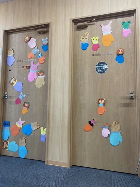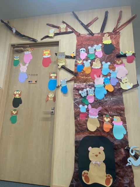 大きな手袋の中に動物たちが入り、気持ちよさそうにしている明るい雰囲気の壁画を完成させることができ、ご利用者様のアイディアが輝いている作品となりました🎵