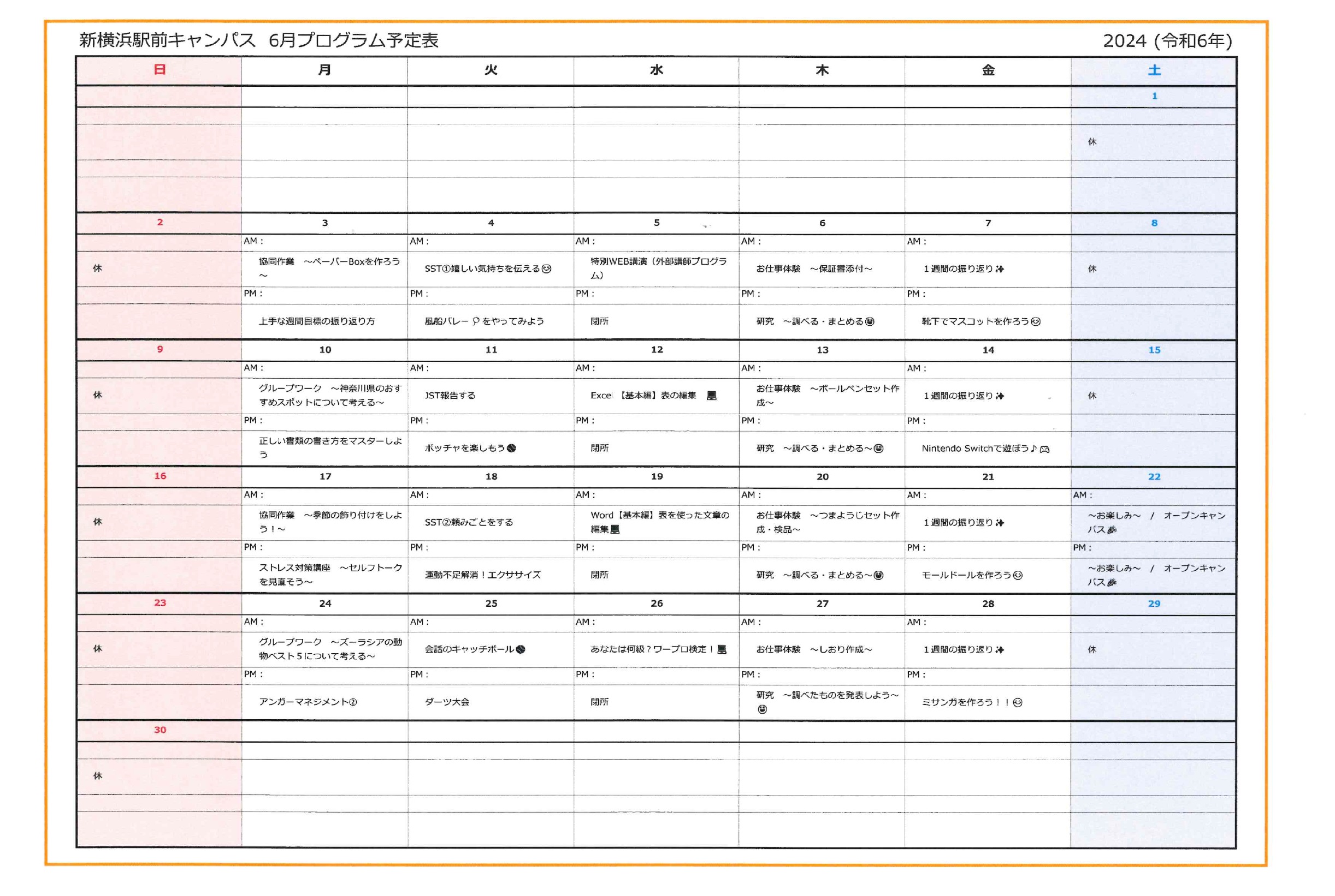 その他にも色々なプログラムが実施されています。⬇️6月のプログラムは、こんな感じです。⬇️