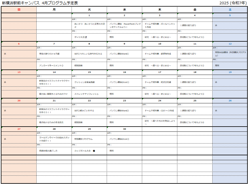 さて、今回のブログでは4月のプログラムをご紹介いたします📚