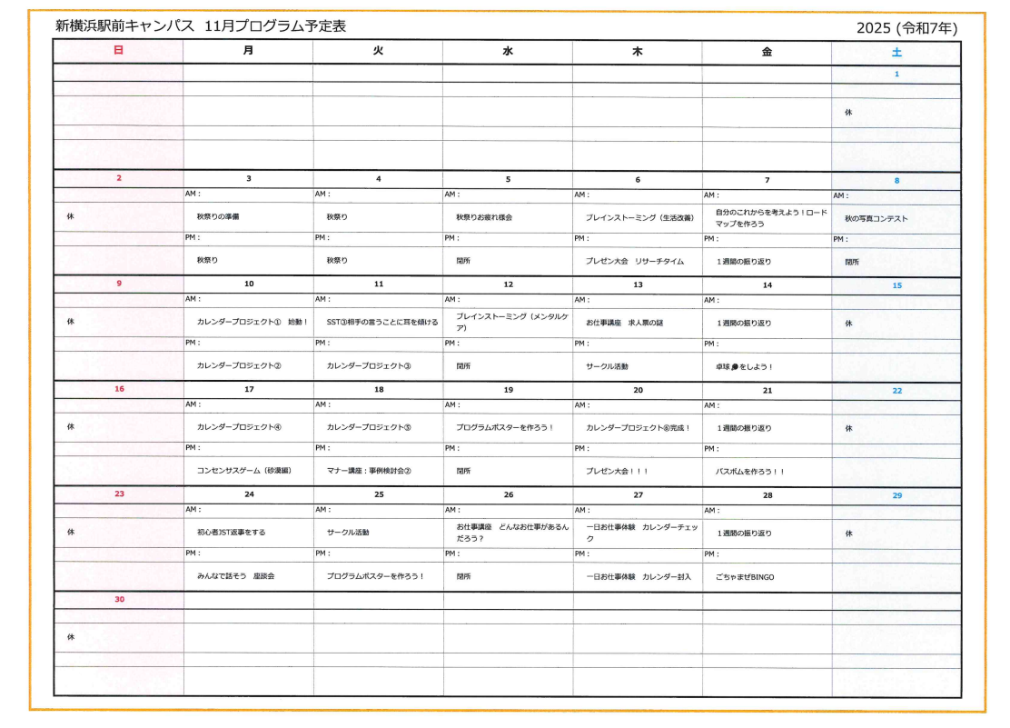 【新横浜駅前キャンパス】🍄🟫🍁秋祭りのご案内と11月のおすすめプログラム🌰🍂