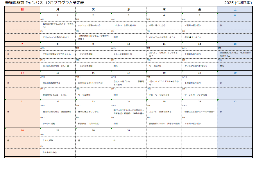 さて、新横浜駅前キャンパスからは、12月のおすすめプログラムについてのご紹介をさせていただきます。
