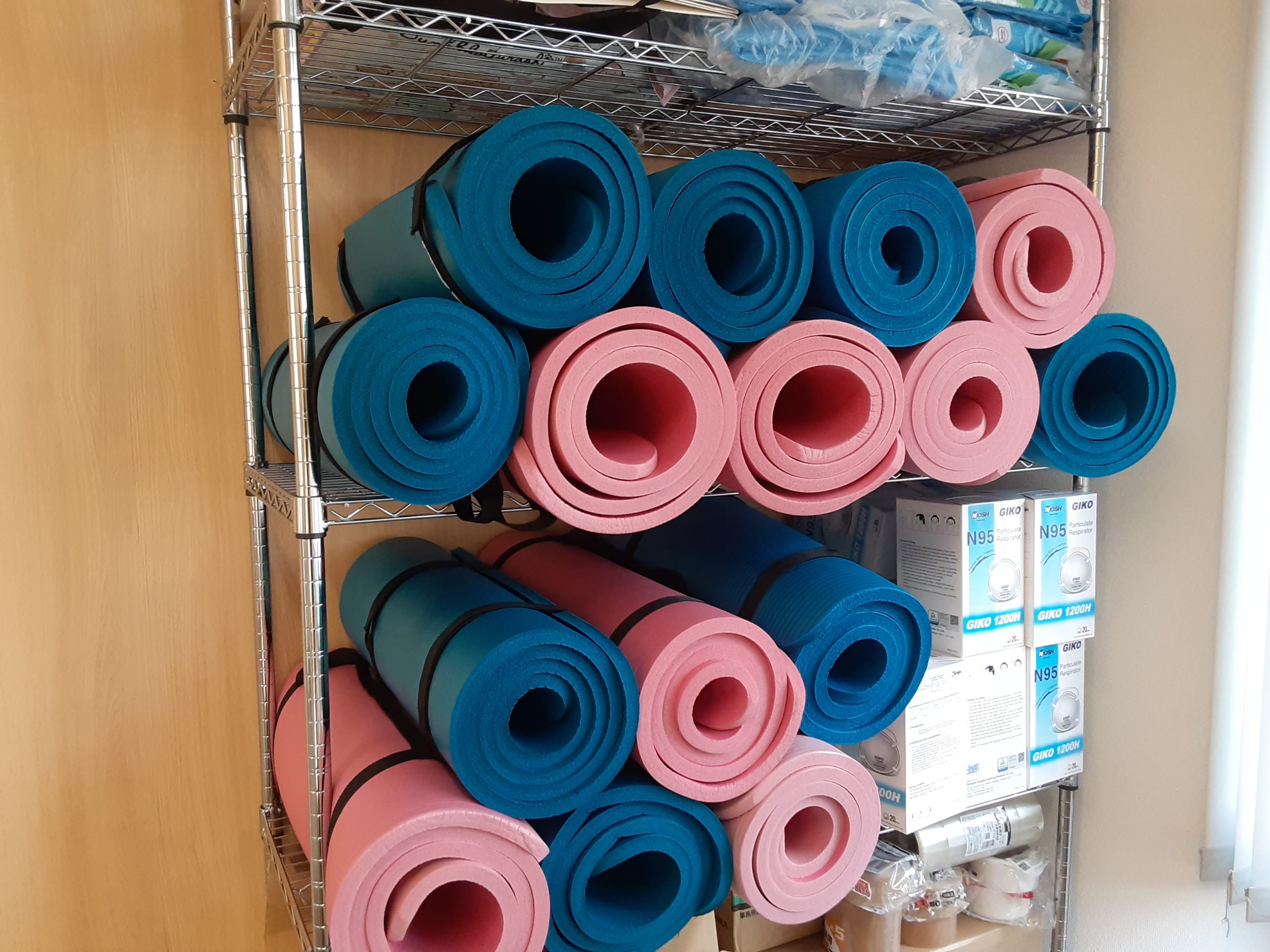 湘南藤沢キャンパスではヨガマットを全員分ご用意しており、まずは皆さんにマットを敷いていただくことから始まります。