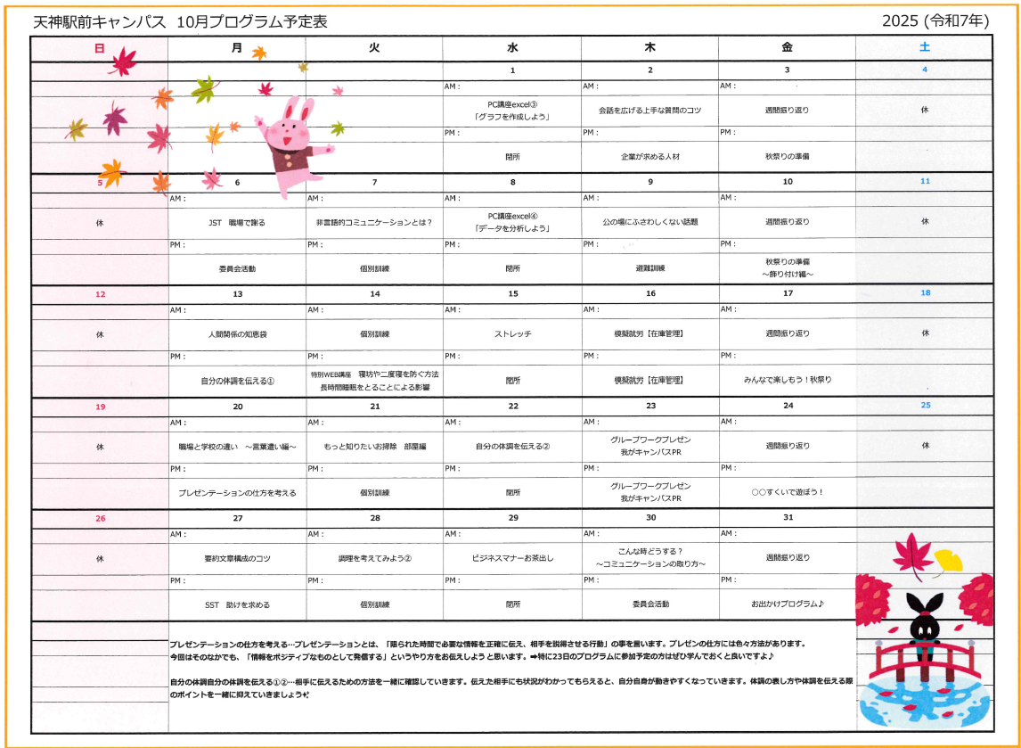 【天神駅前キャンパス】10月プログラムの紹介🍂