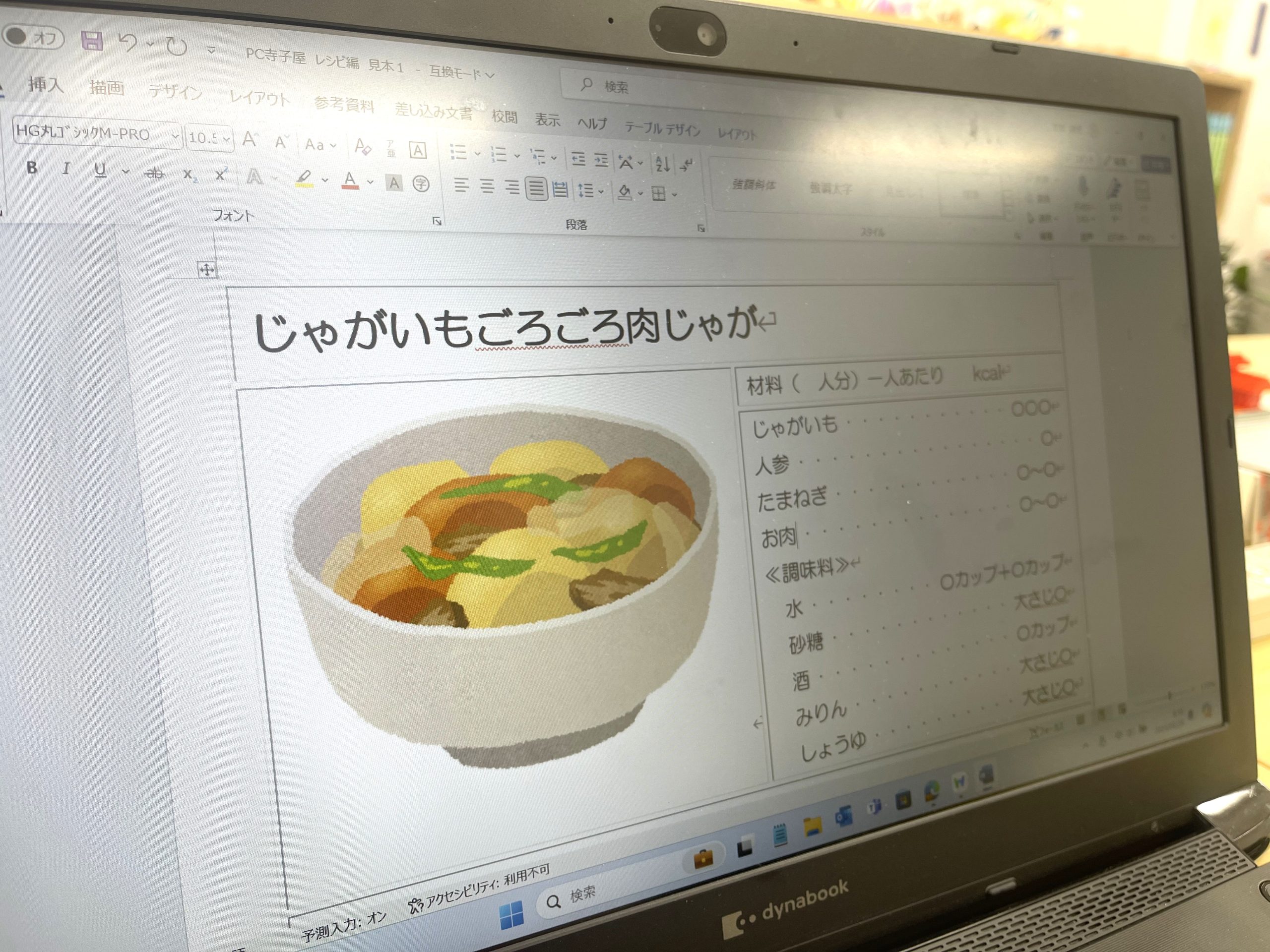 今回のプログラムではWordを使用し【料理のレシピ】を作るプログラムを行いました🍳