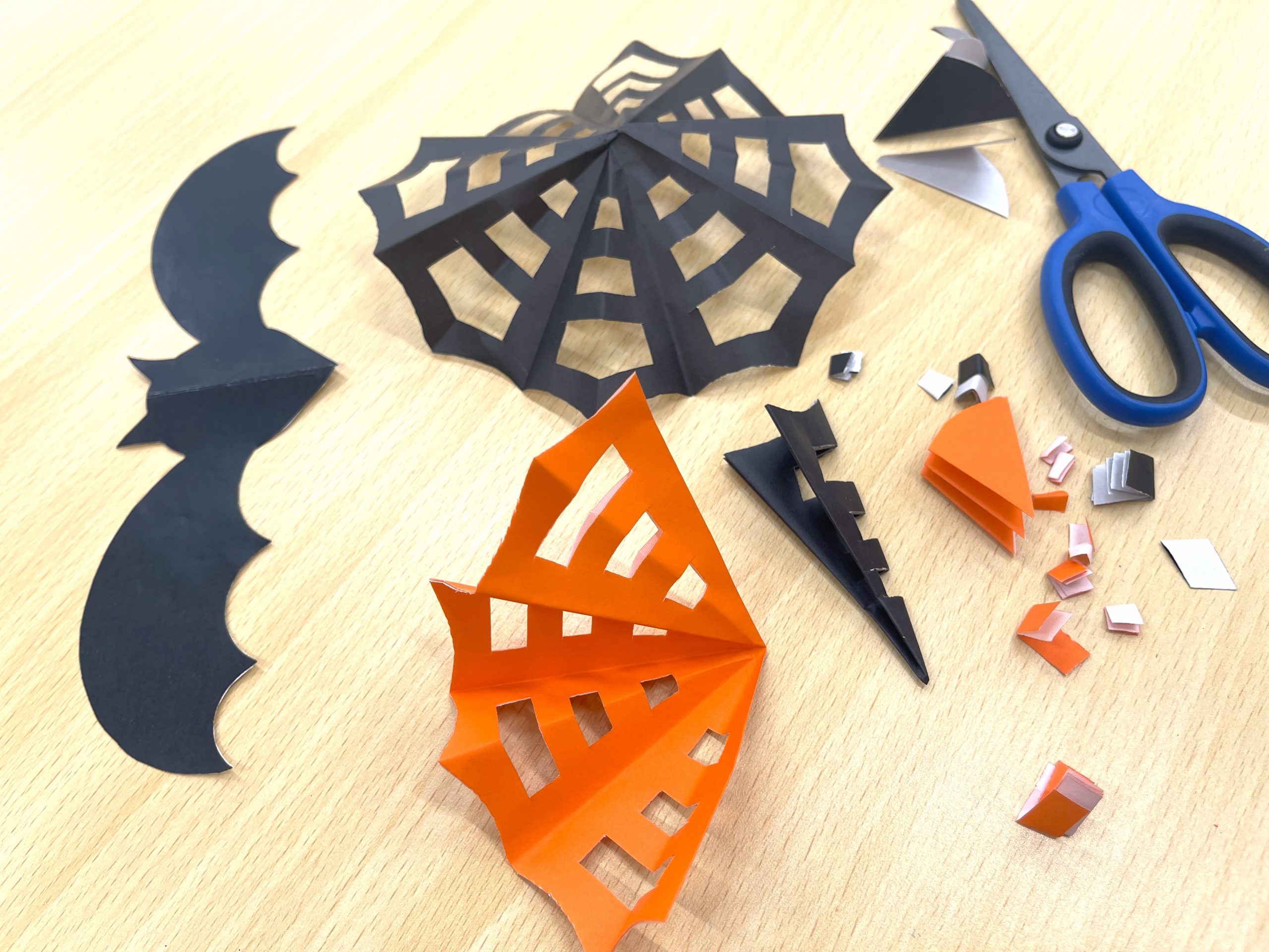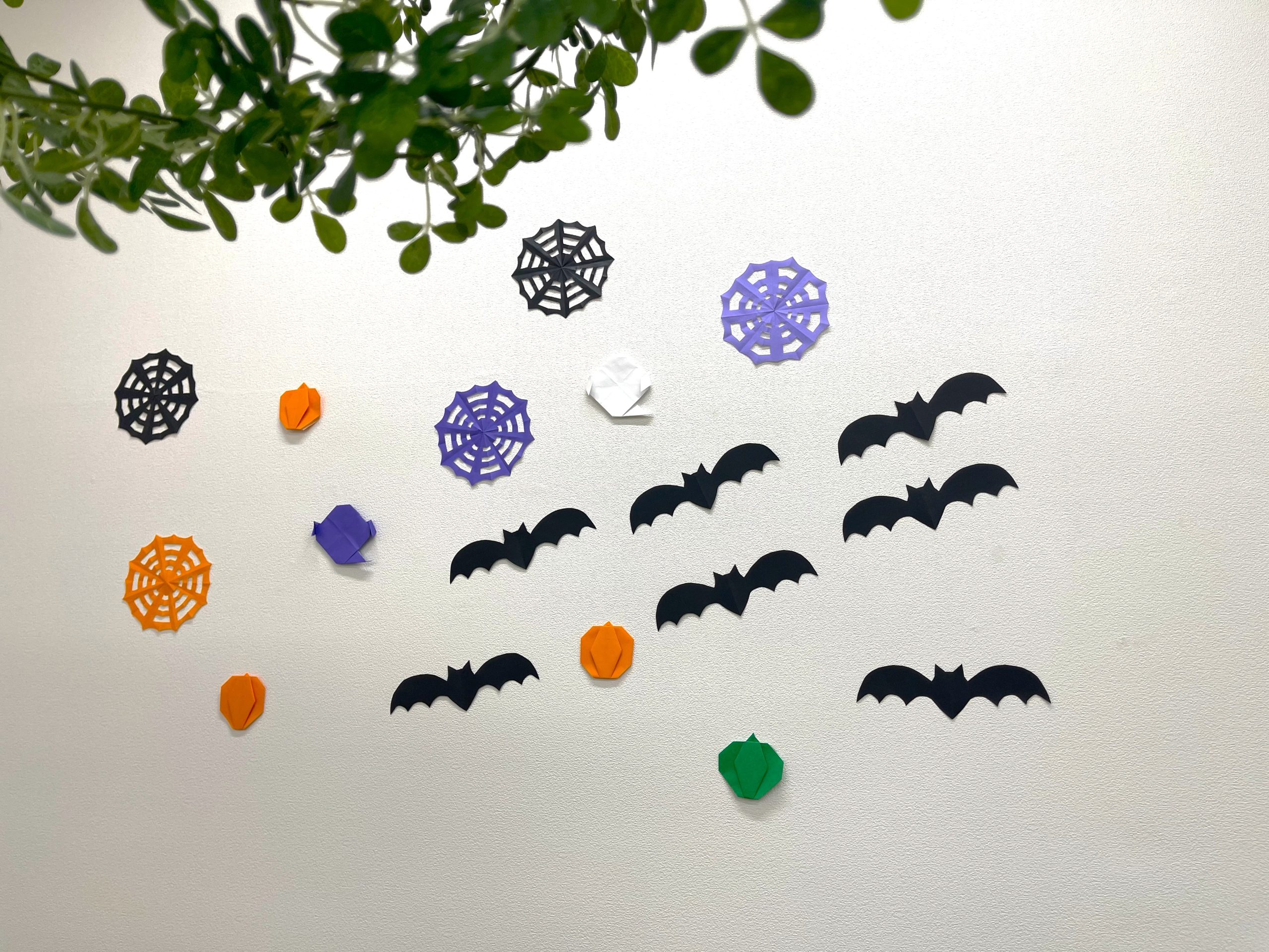 クモの巣とコウモリを折り紙を切り抜いて作りました🕸️