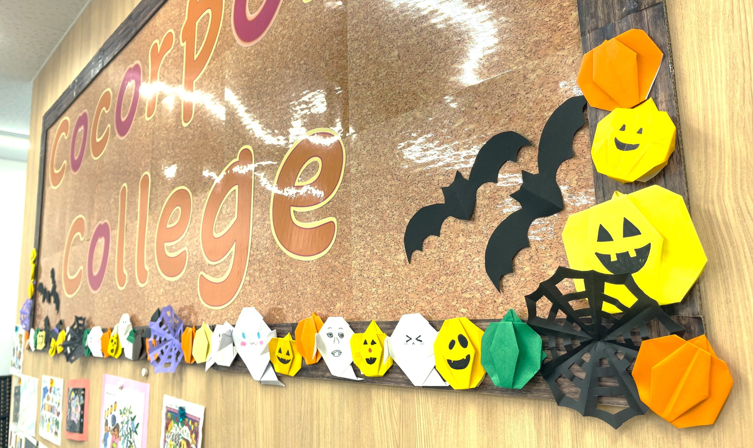 出来上がった飾りを壁に貼りつけ、一気にキャンパス内がハロウィンの雰囲気に!!!