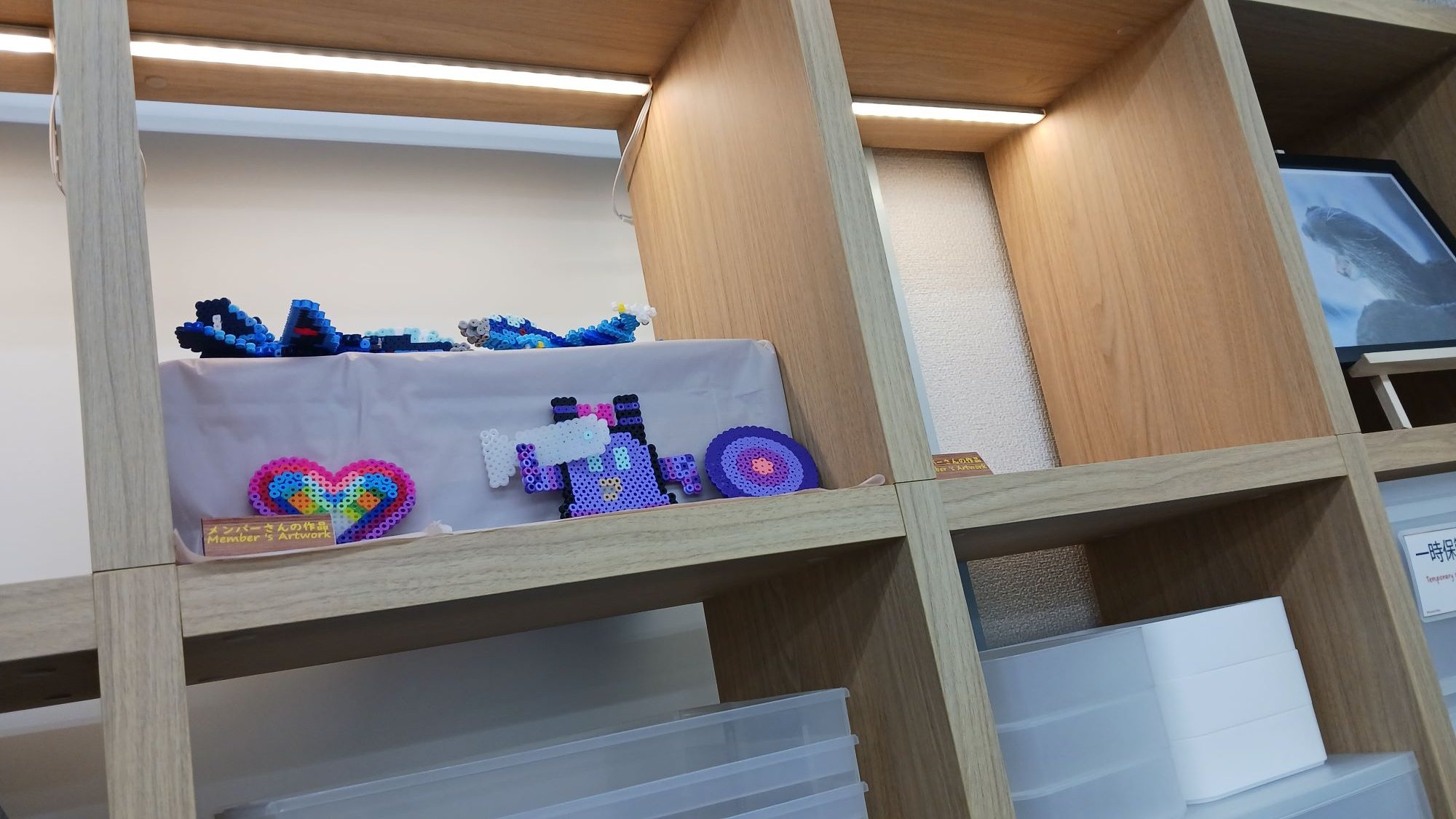 大和駅前キャンパスでは、メンバーさん(ご利用者さん)の作品を飾るスペースを