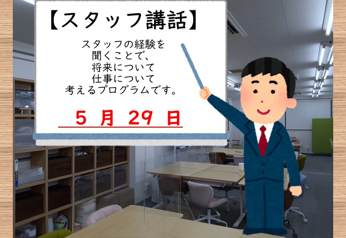 「スタッフ講話」プログラムは毎月実施しており、次回は5月29日です。