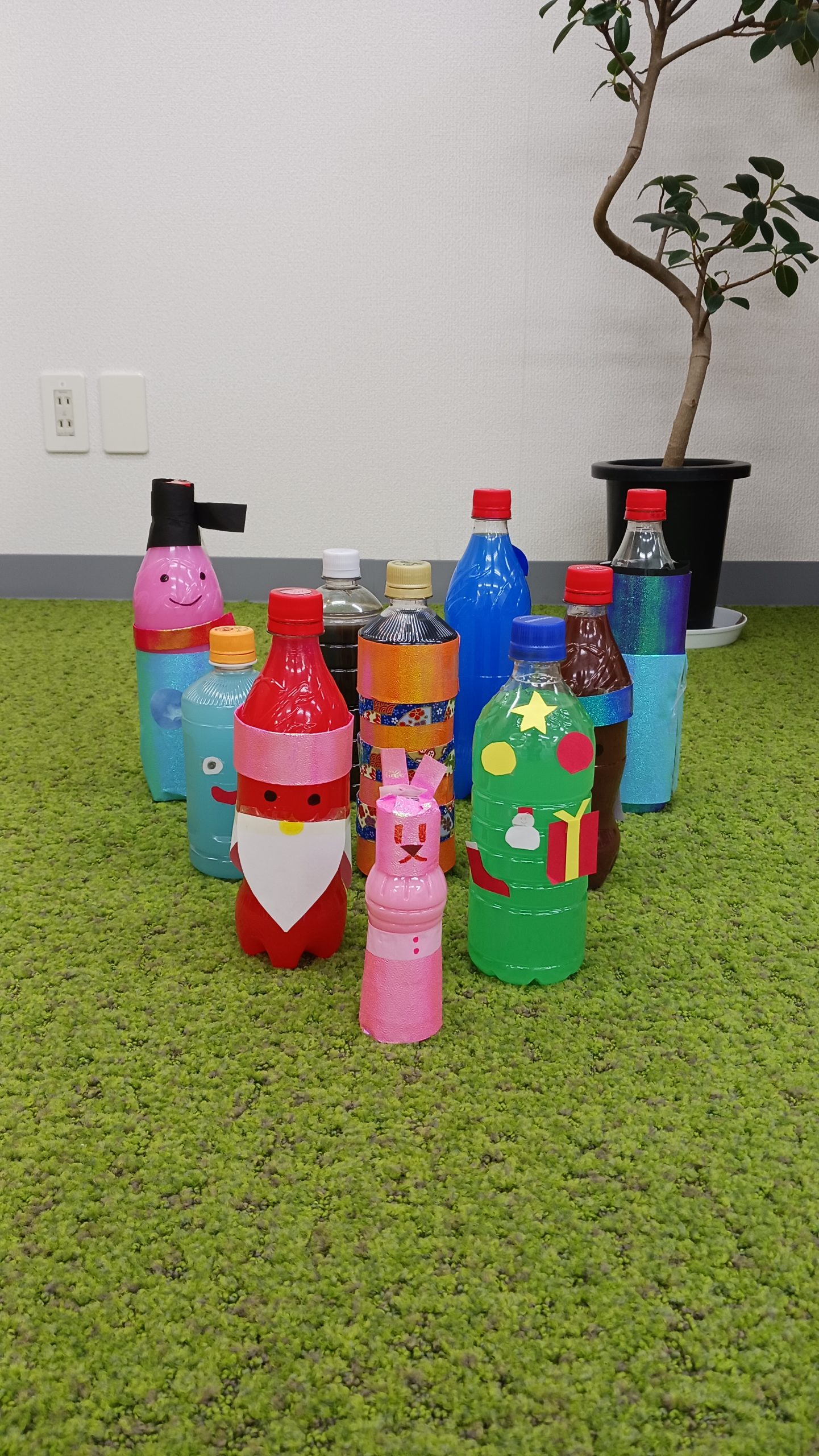 ペットボトルボウリング大会に向けてペットボトルをピンに見立て、アレンジ作成をいたしました。