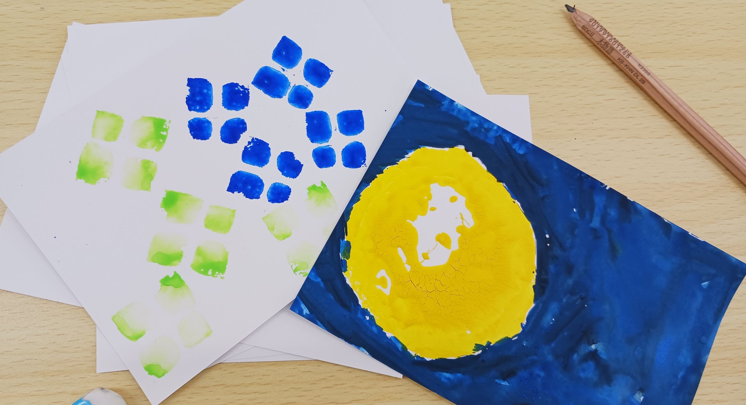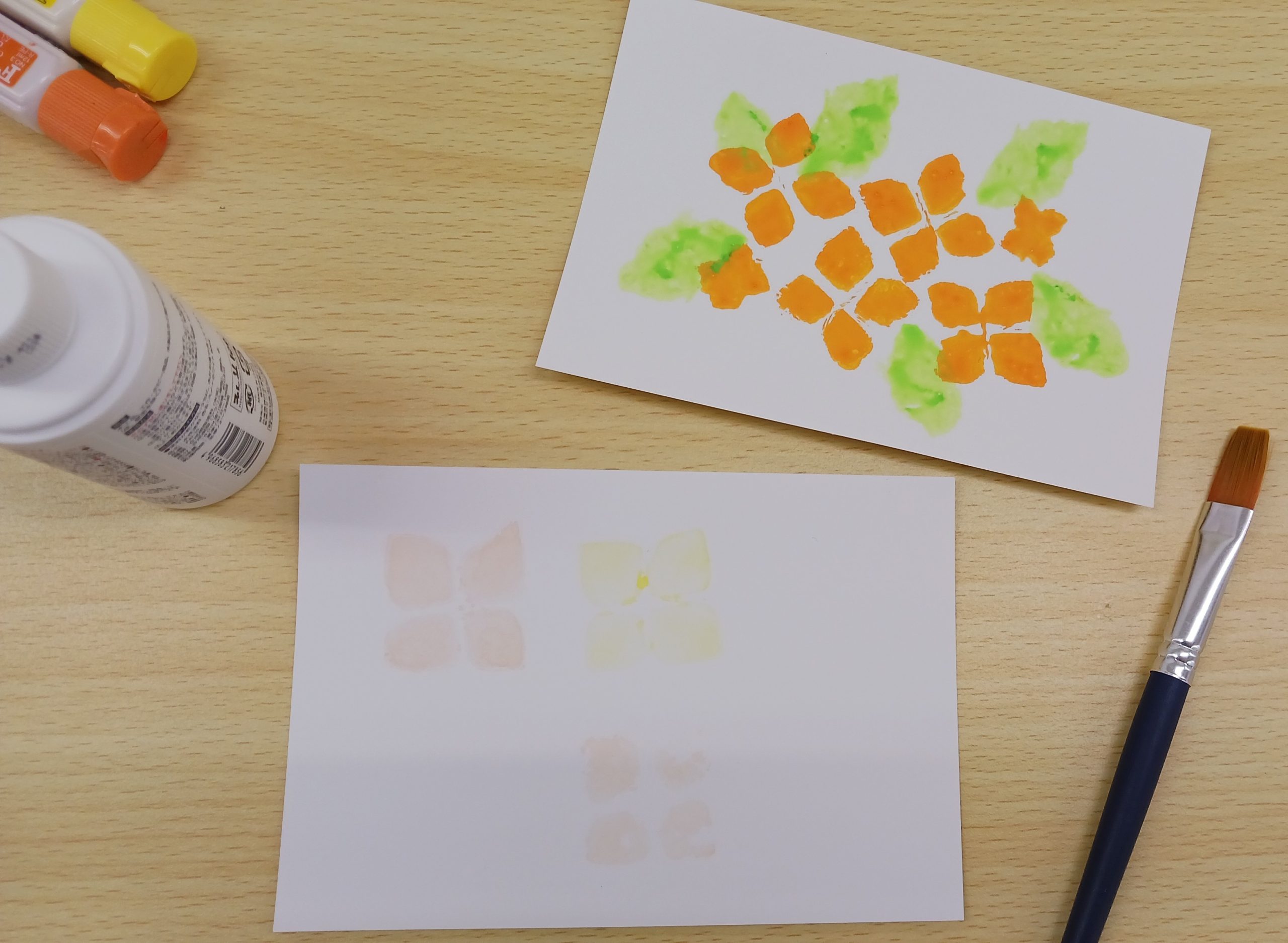 今回の絵葉書は身近にあるものを使用して作りました。作り方は同じでもインクが変わると違うお花や模様に見えますね👀