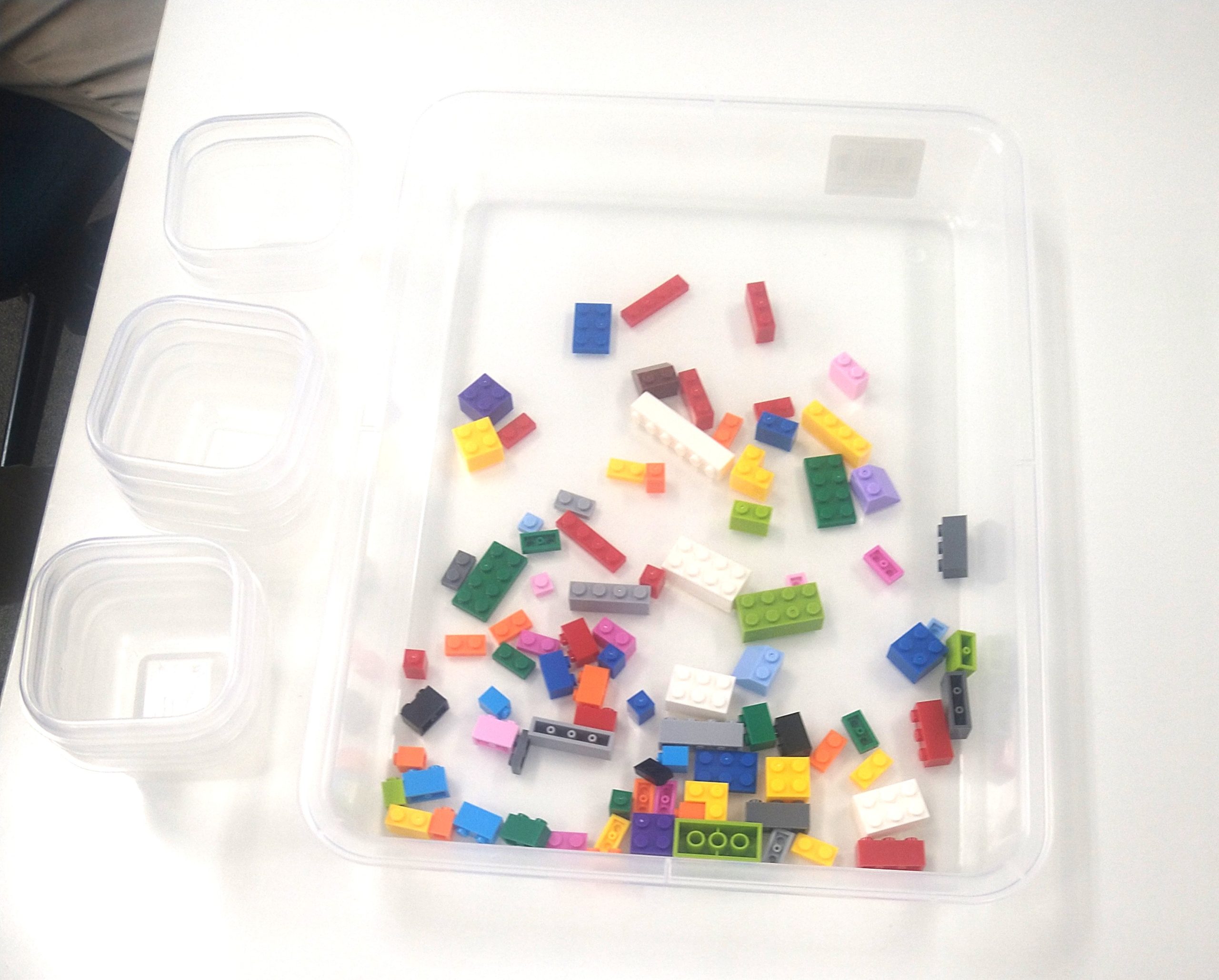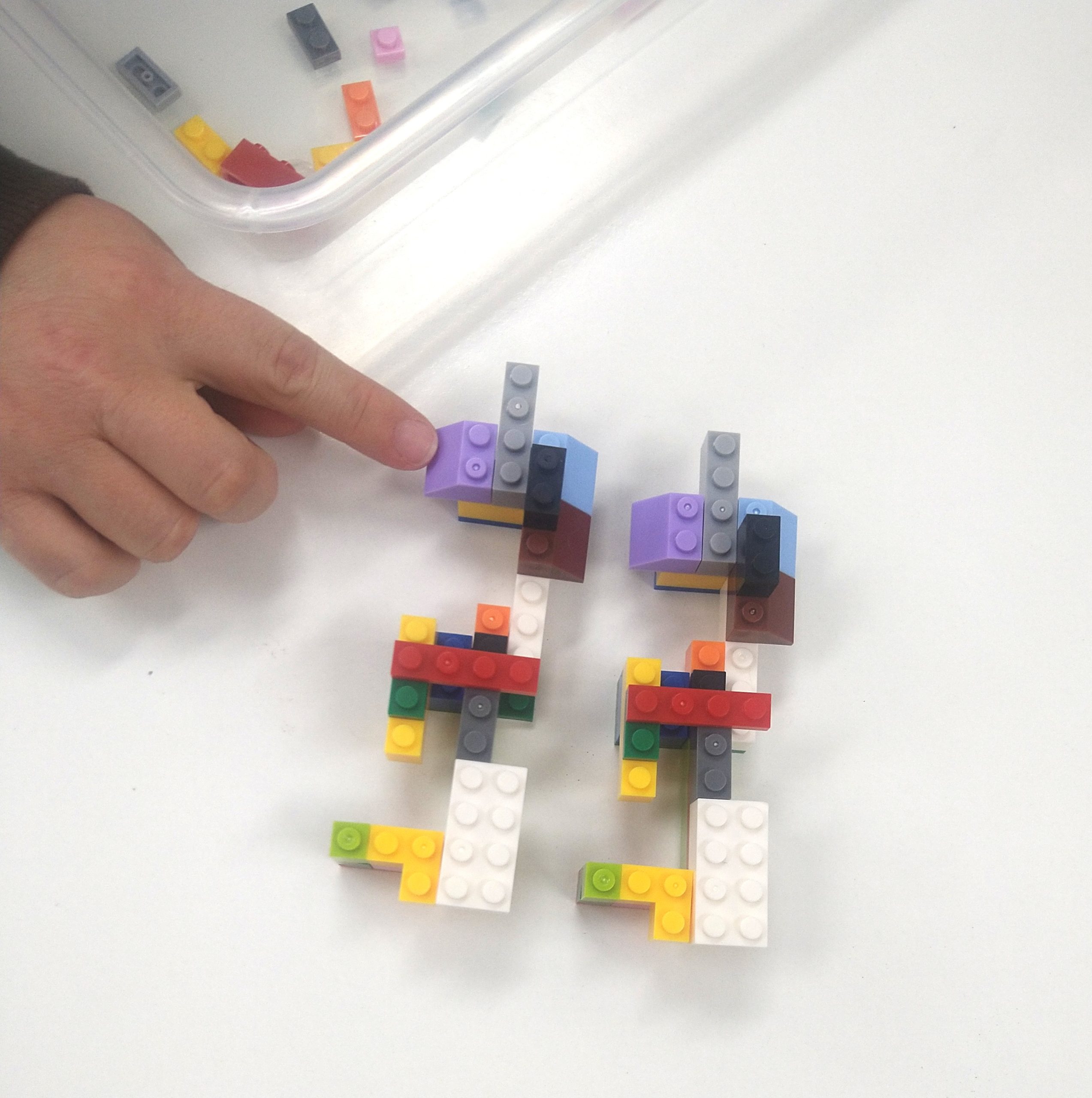 これは小さいブロックを使ってスタッフが作成したブロックを見本にして、参加したメンバーがコミュニケーションを使い、色や形を伝えて同じものを作成するというものです。