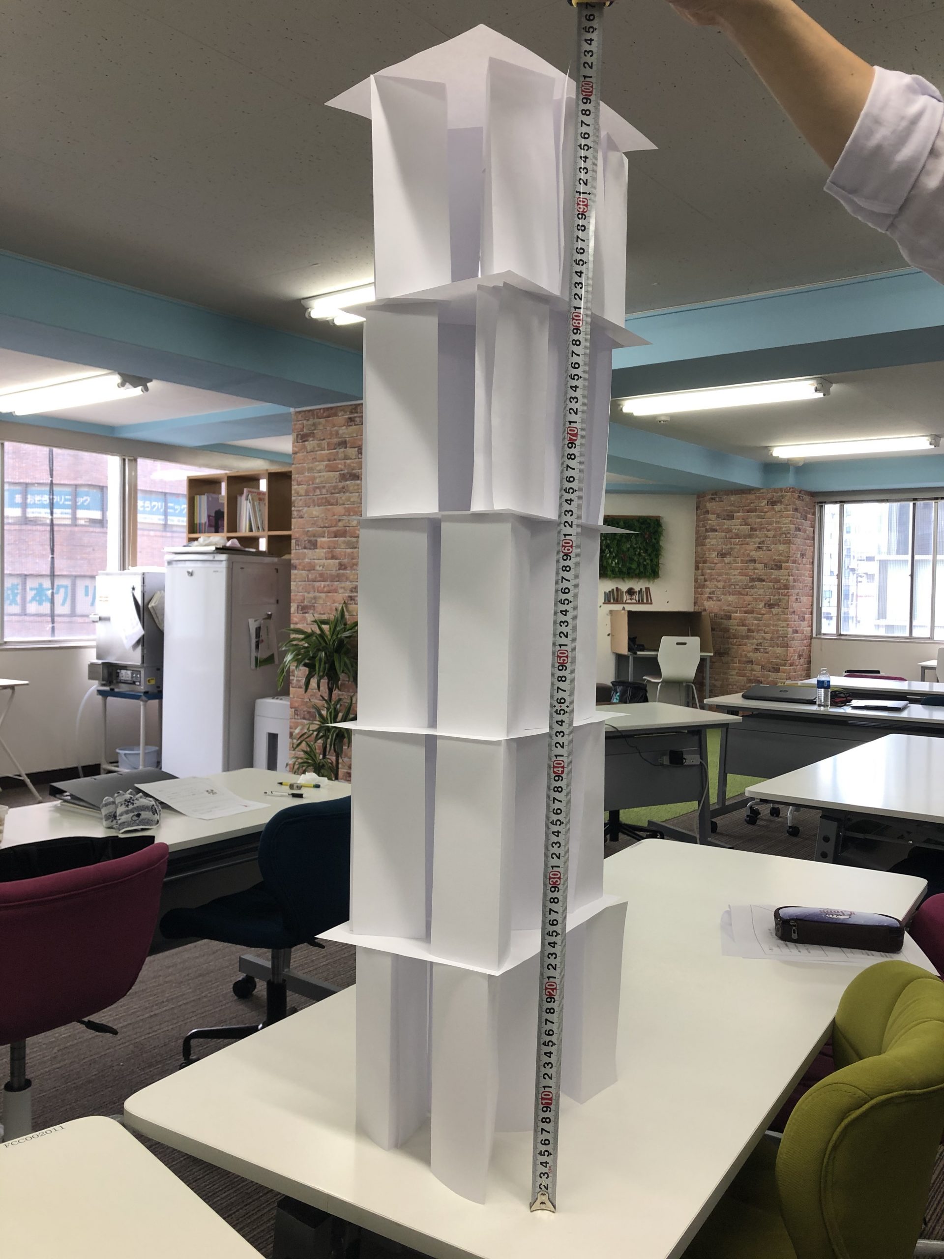 下の写真が「ペーパータワー」という紙をとにかく高く積み上げるゲームです。