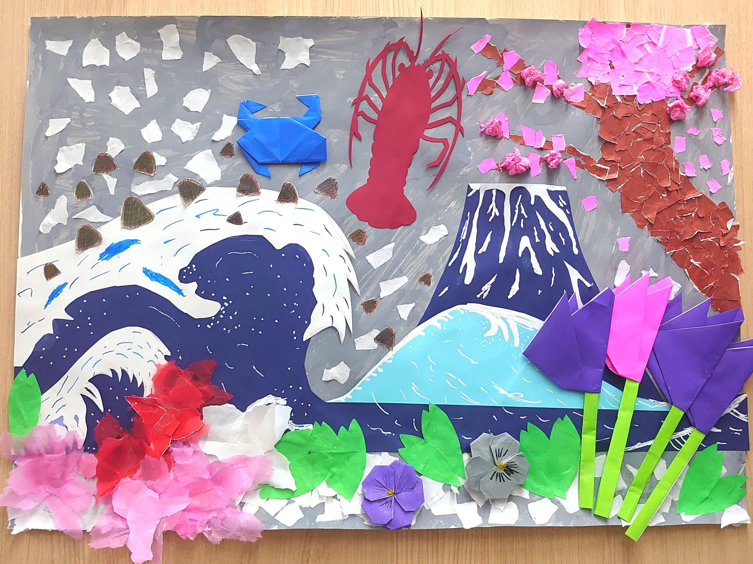 ちぎり絵や切り絵、折り紙など様々な作り方で表現し、とても華やかでおめでたい作品になりました🌸