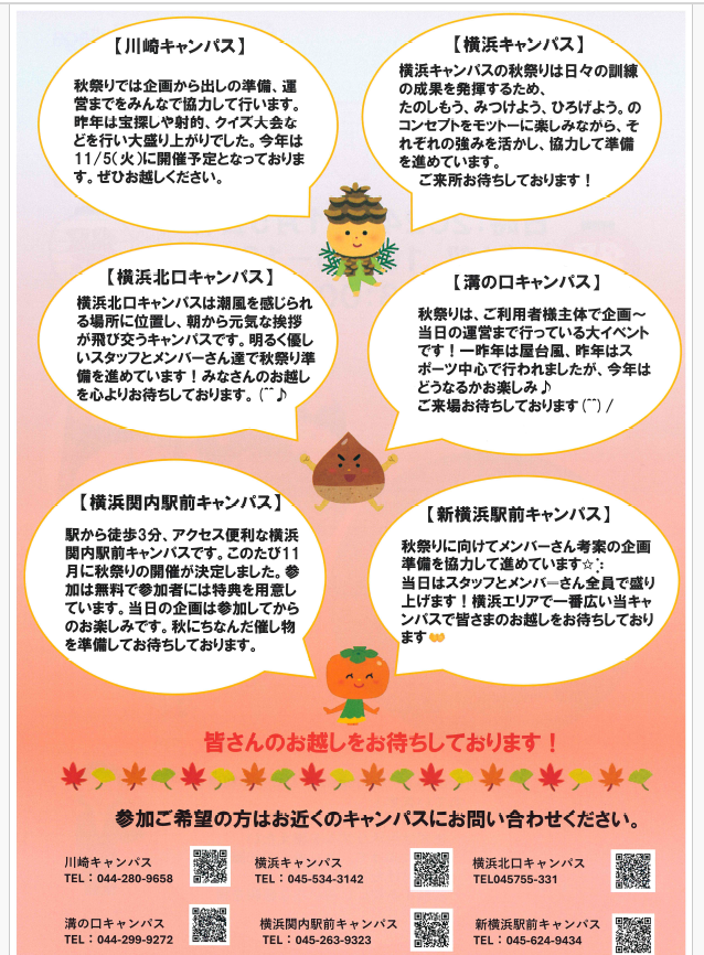 ぜひみんなで楽しみつつ秋を感じましょう‼️🌰🍁🍂