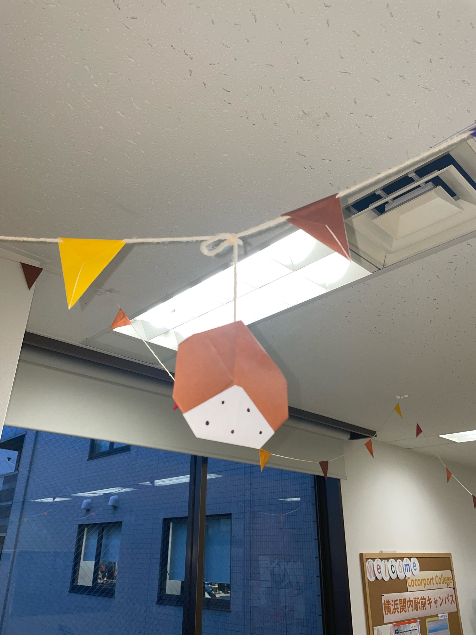 そして、ガーランドには季節の折り紙をぶら下げており、秋満載のキャンパス仕様になっています✨