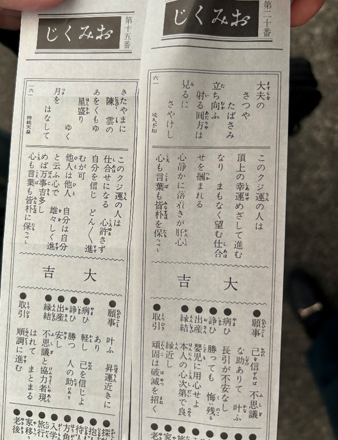 おみくじを利用者さんとスタッフが引いて見事!ダブル大吉がでました!!
