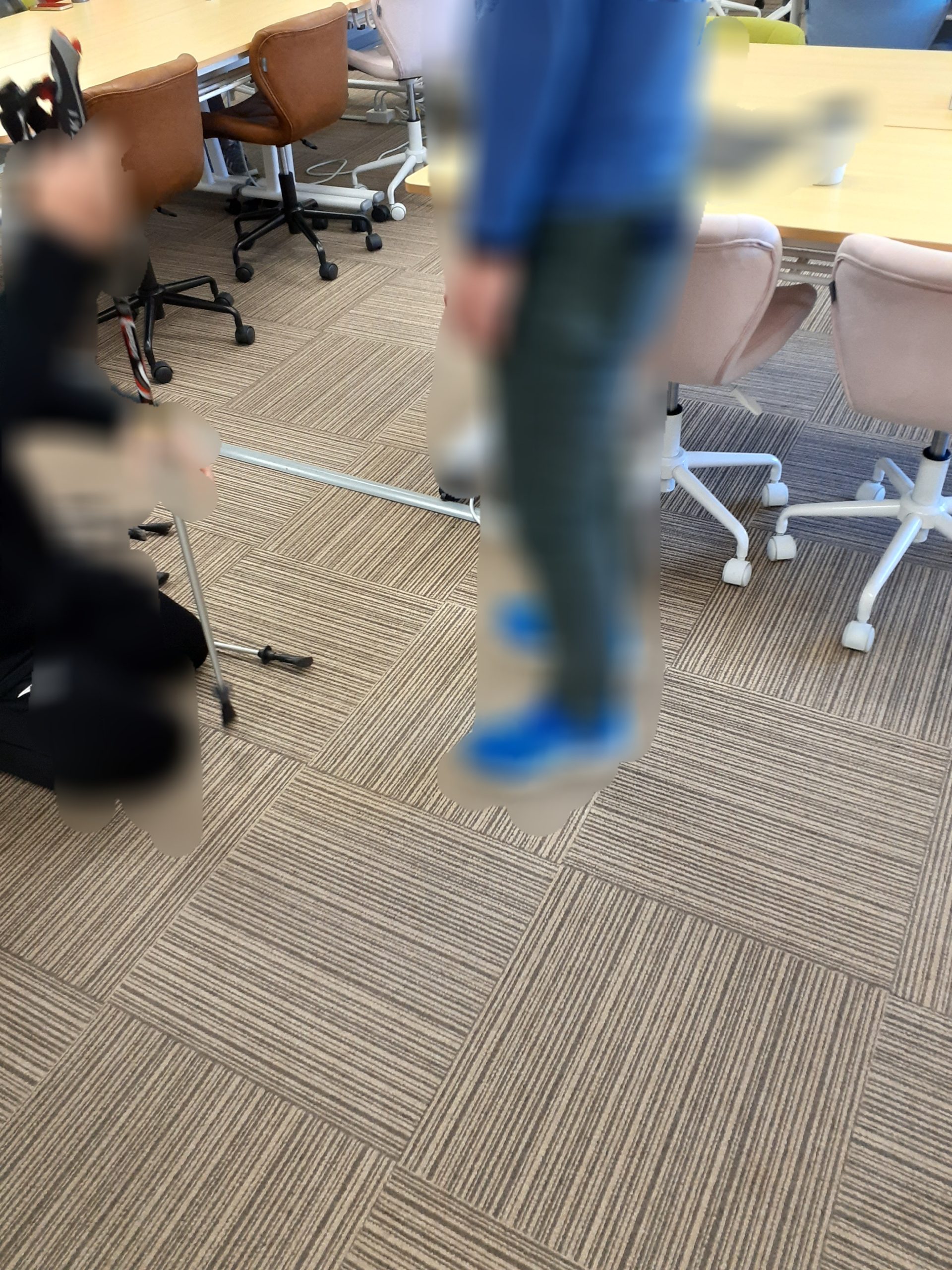 最初に、説明とポールを背丈に合わせて室内で練習