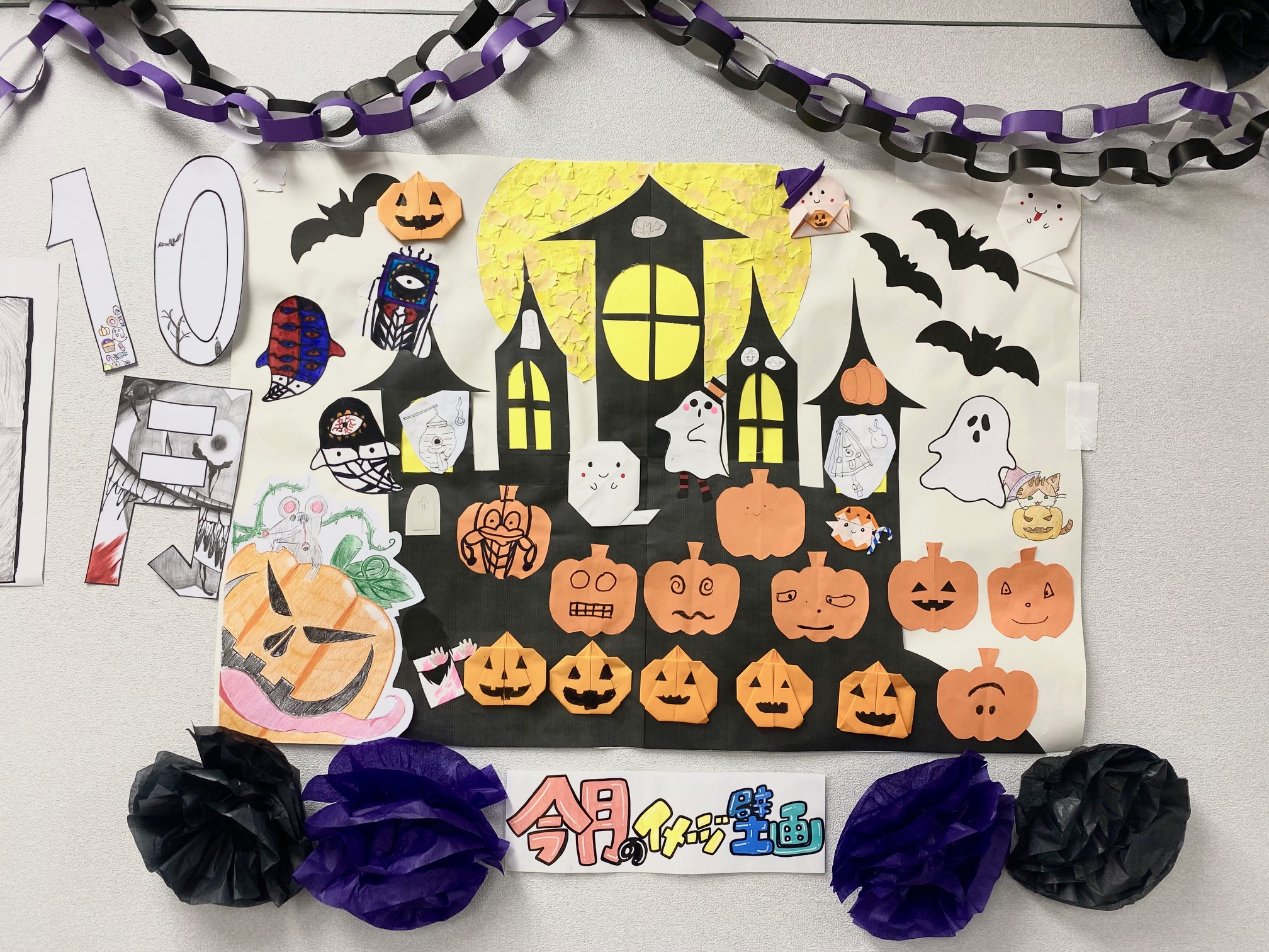 キャンパスでもハロウィンのイメージ壁画が完成しました。