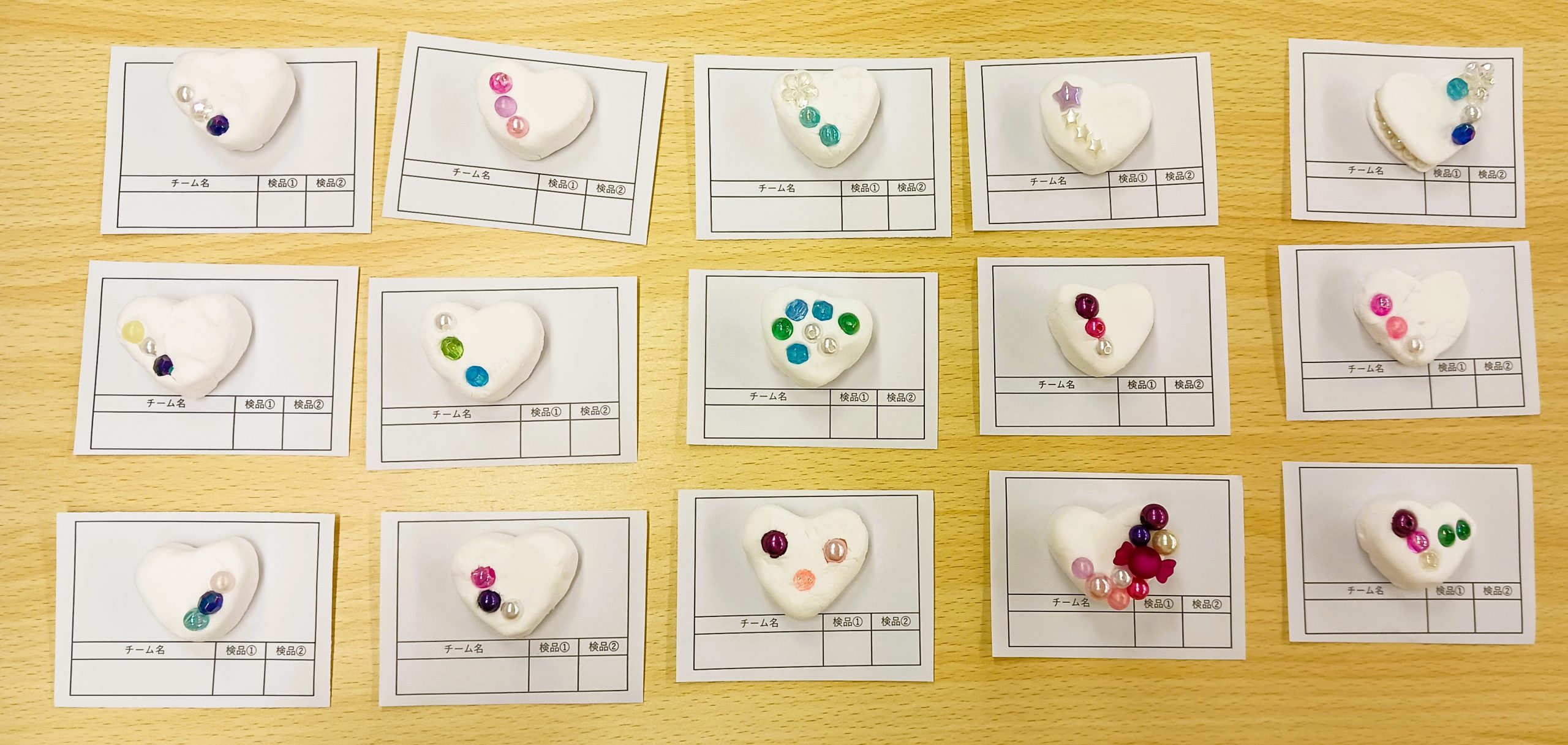 見本をみながらハート💛の形の土台に好きな色のビーズを配置し、みなさんの個性も感じられるかわいくて素敵なマグネットが出来上がりました✨