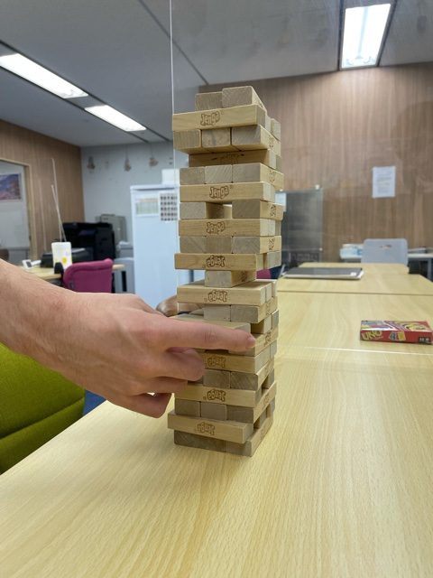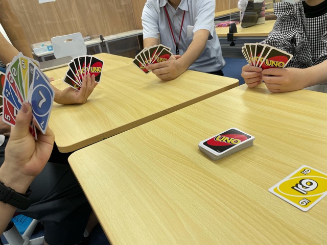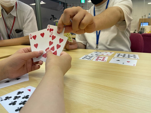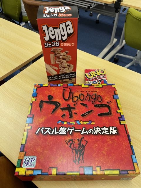 その緊張をほぐしてくれるのがアイスブレイクです。UNOやトランプ、ジェンガ、スタッフ考案のゲームなどを行います。